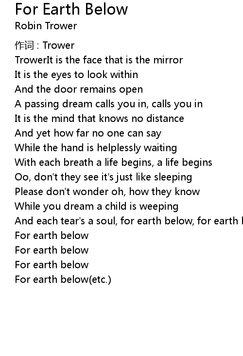 | 歌曲 | For Earth Below |