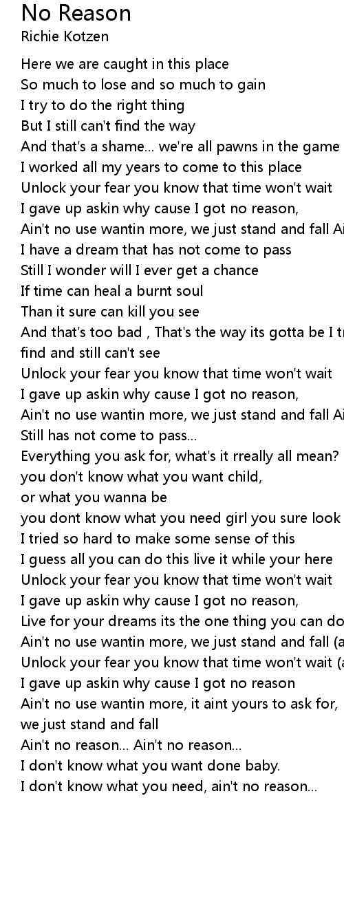 Ain't no use wantin more, we just stand and fall Ain't no reason.... |