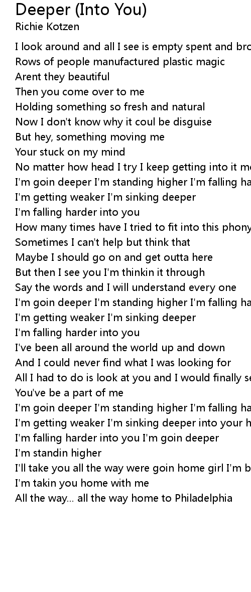 I'm goin deeper I'm standing higher I'm falling harder into you |