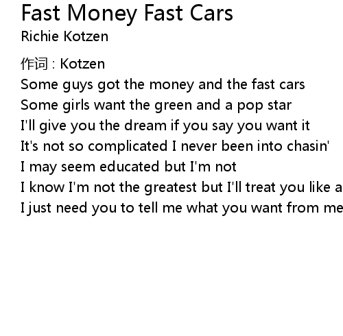 | 歌曲 | Fast Money Fast Cars |