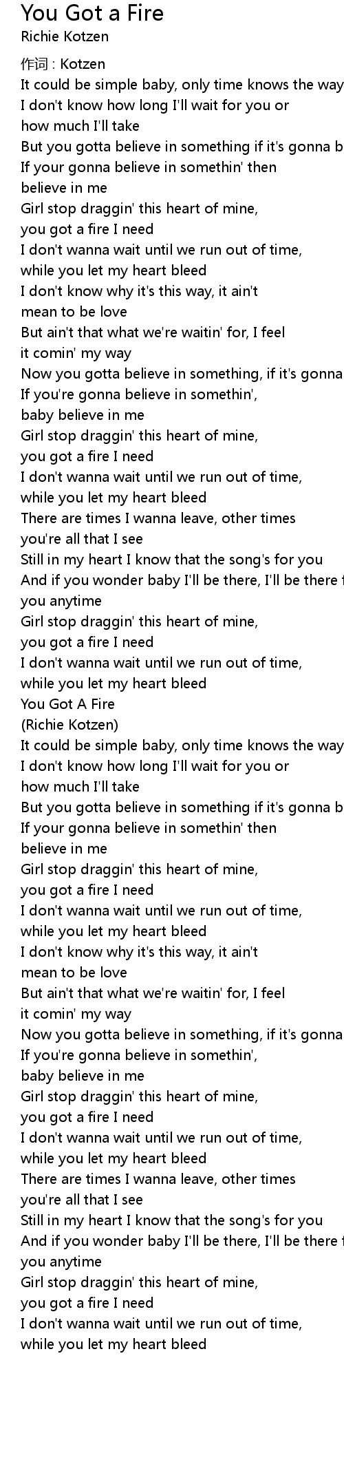 | 歌曲 | You Got a Fire |