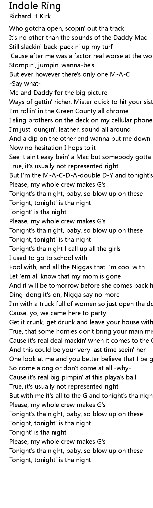 But I'm the M-A-C-D-A-double D-Y and tonight's tha night |