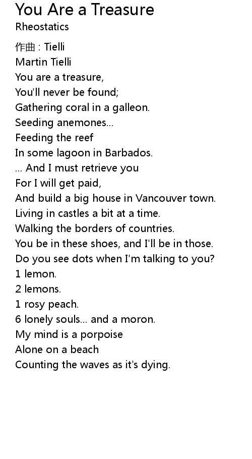 | You are a treasure, | |