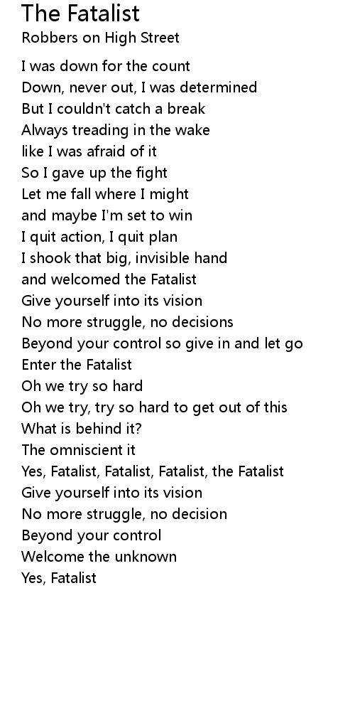 Yes, Fatalist, Fatalist, Fatalist, the Fatalist |