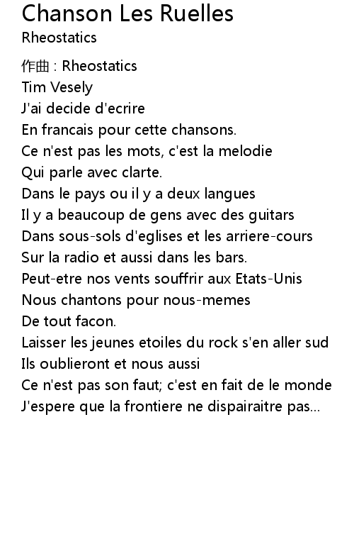 | 歌曲 | Chanson Les Ruelles |