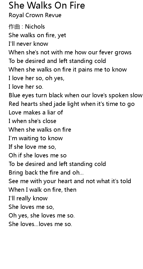 | 歌曲 | She Walks On Fire |