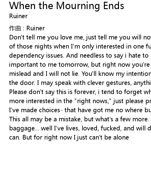 | Please don't say this is forever, i tend to forget what that word means. I'm more interested in the "right nows," just please promise you won't leave. | |