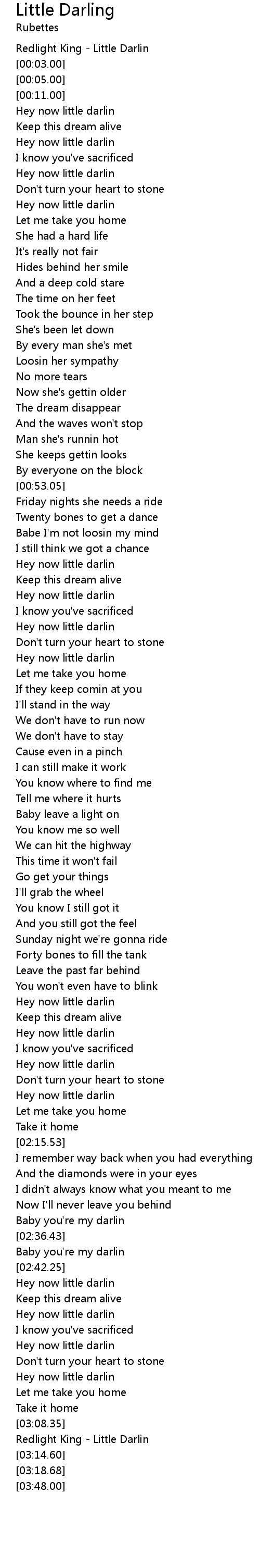 Hey now little darlin |