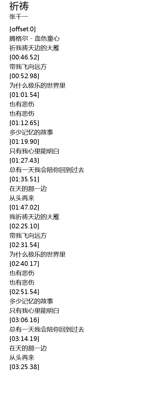 | [02:18.04] | 我祈祷天边的大雁 |