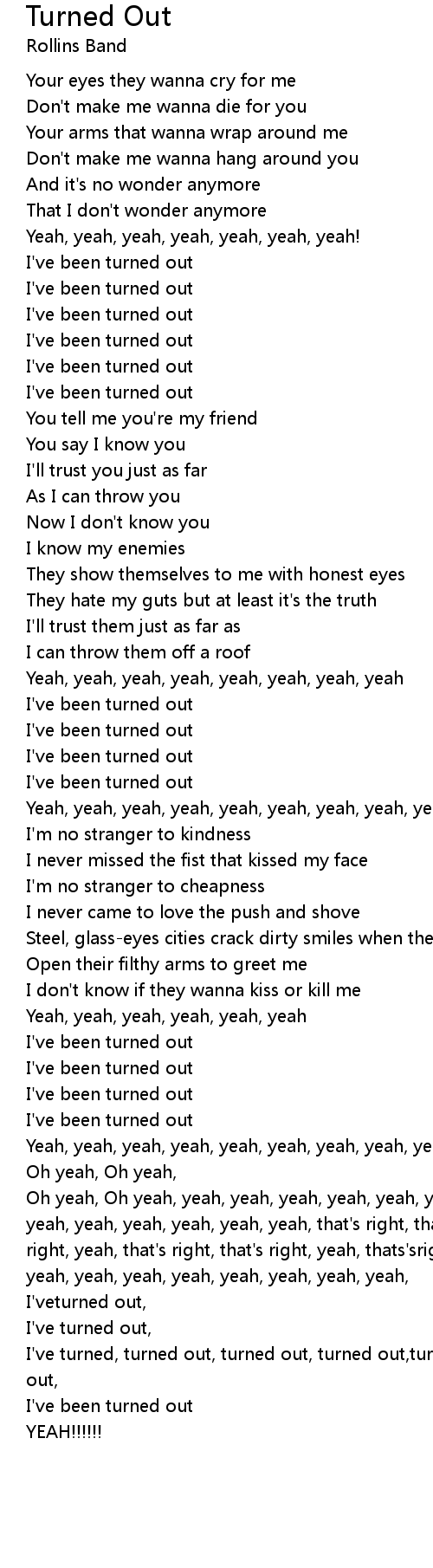 I've turned, turned out, turned out, turned out,turned out, out, out out, turned out, |