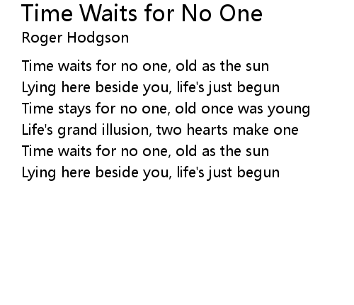 | Time waits for no one, old as the sun | |