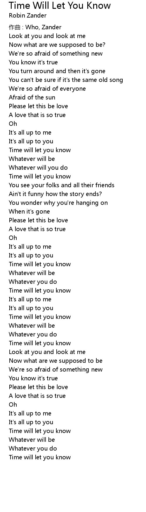 | 歌曲 | Time Will Let You Know |