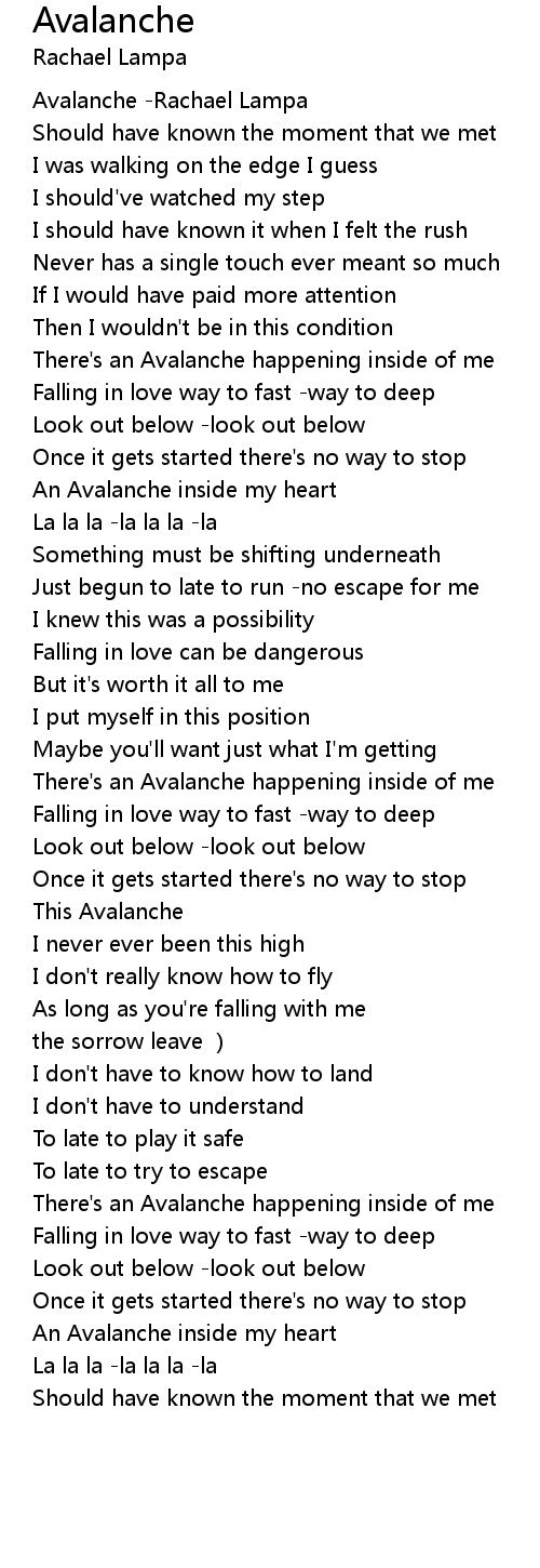 | [00:01.171] | Avalanche Rachael Lampa |