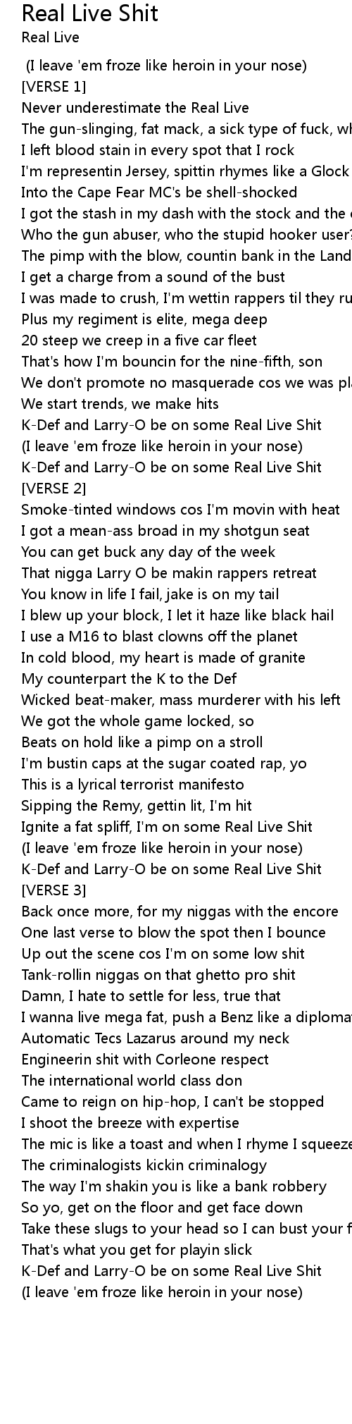 Ignite a fat spliff, I'm on some Real Live Shit |