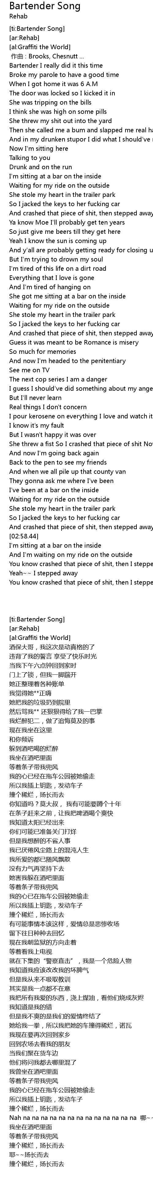 | [ti:Bartender Song] | |
