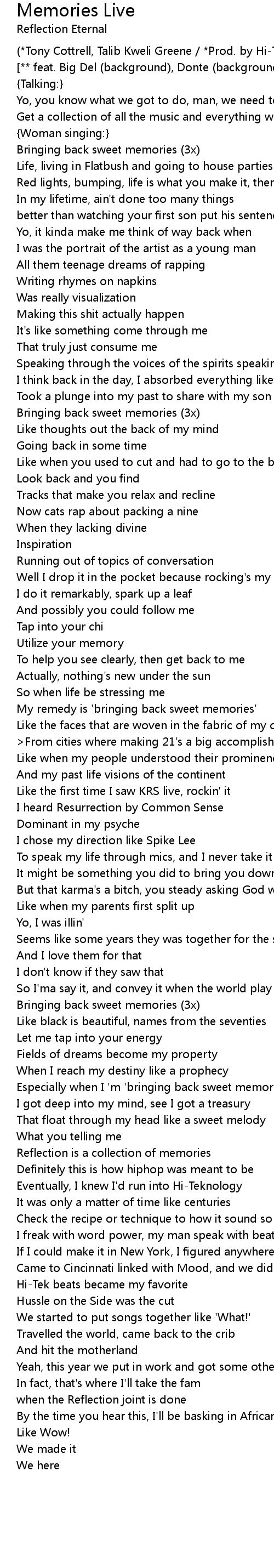 (*Tony Cottrell, Talib Kweli Greene / *Prod. by Hi-Tek) |