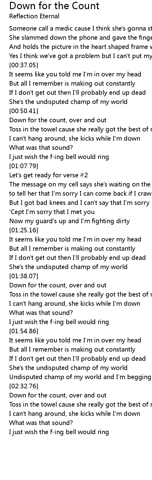 Down for the count, over and out |