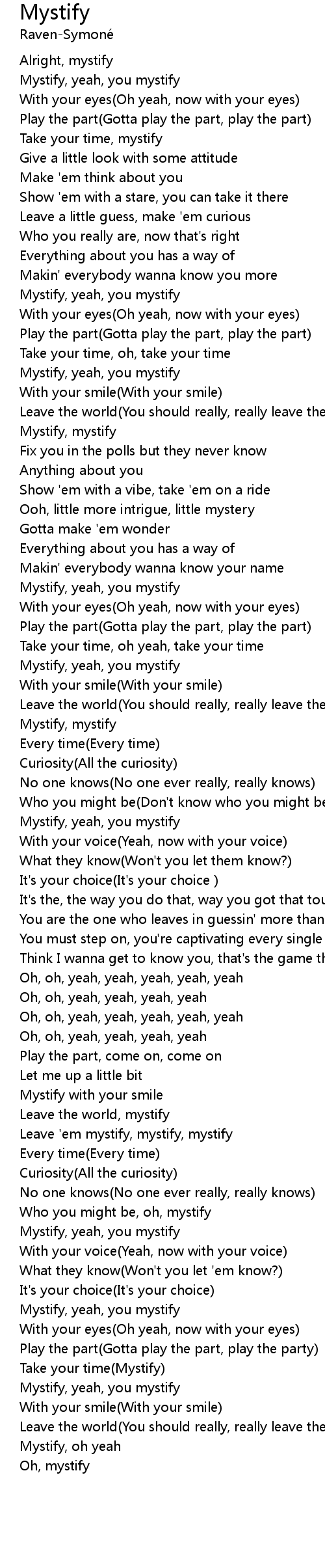 Mystify, yeah, you mystify |