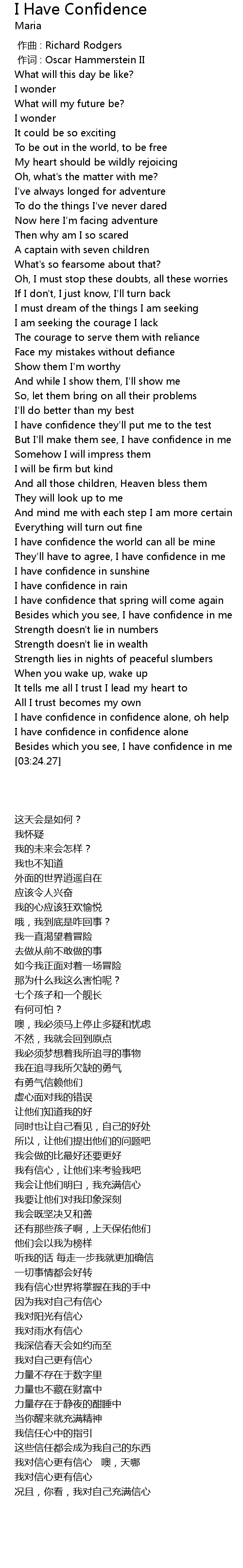 | [03:12.94] | Besides which you see, I have confidence in me |