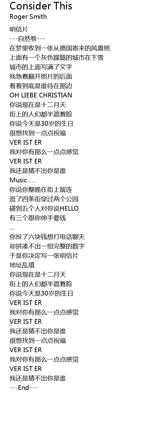 | [00:29.89] | 在梦里收到一张从德国寄来的风景照 |