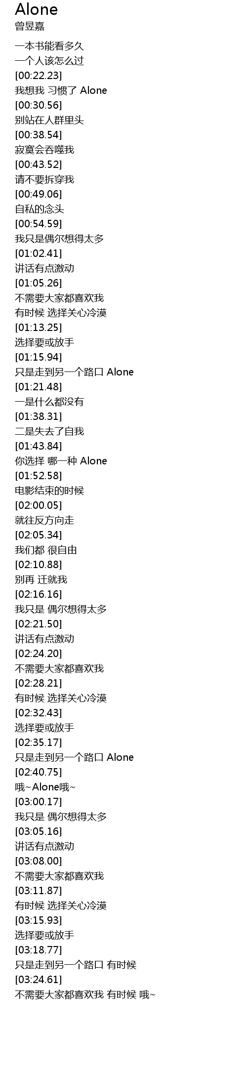 | [02:46.16] | 哦~Alone哦~ |