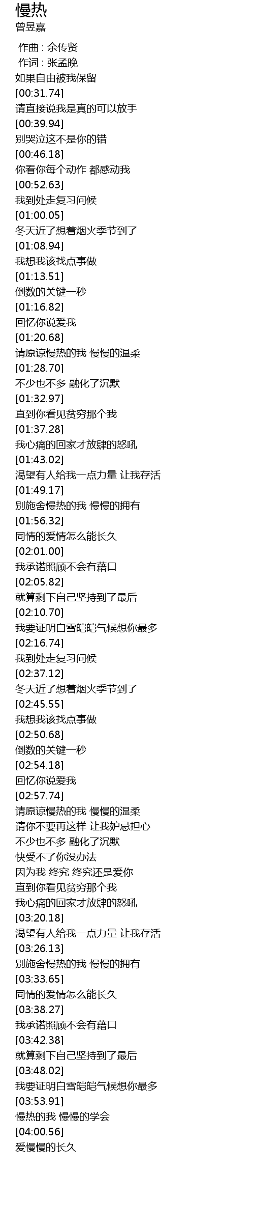 | [03:00.69] | 请原谅慢热的我 慢慢的温柔 |