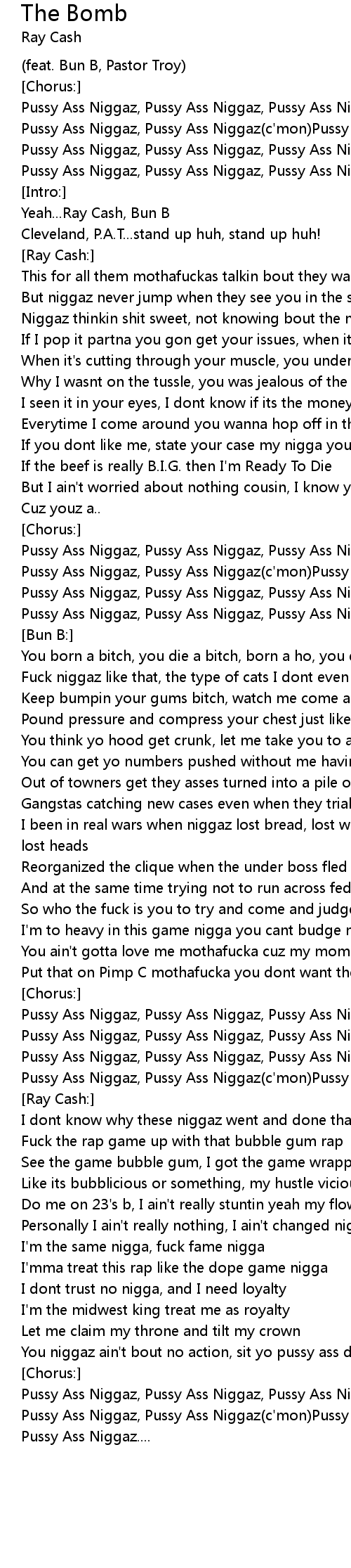 Pussy Ass Niggaz, Pussy Ass Niggaz, Pussy Ass Niggaz, Pussy-Pussy Ass Niggaz |