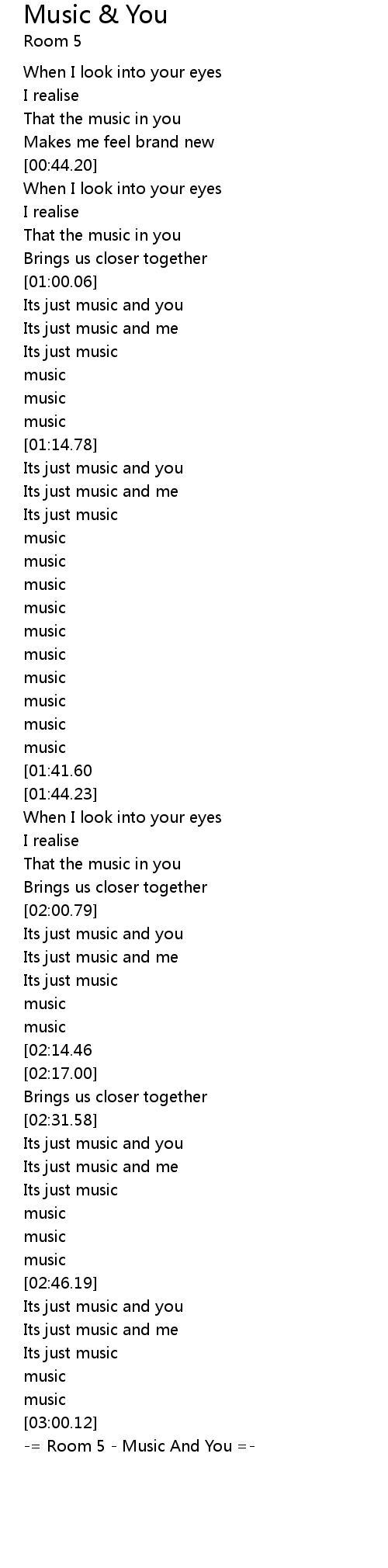 -= Room 5 - Music And You =- |