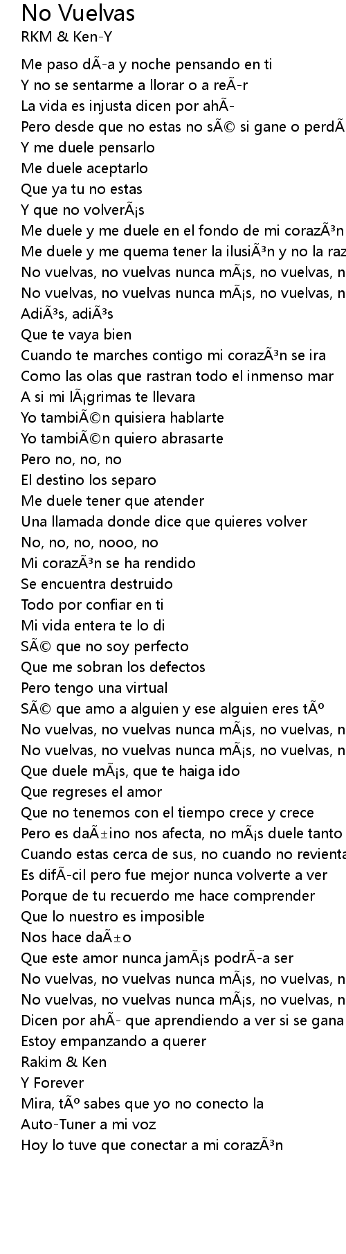 | No vuelvas, no vuelvas nunca m s, no vuelvas, no lastimes mi coraz n | |