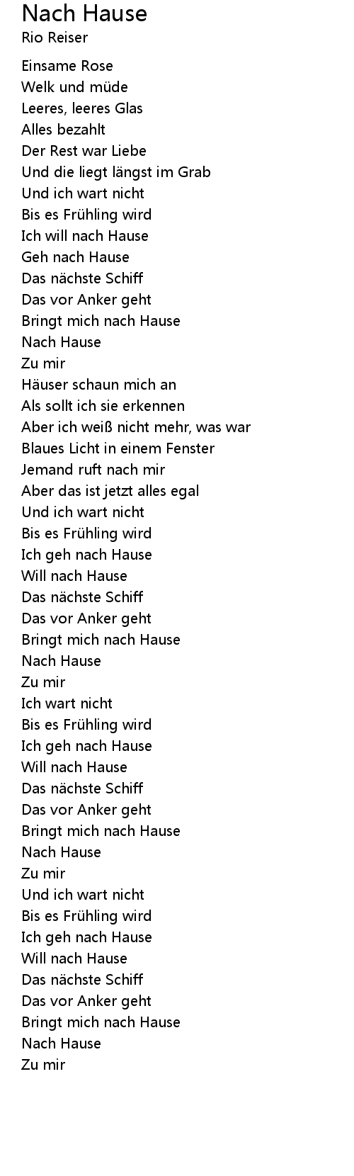 | Will nach Hause | |