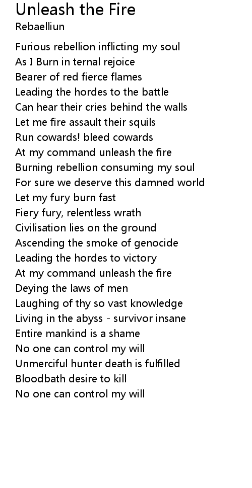 At my command unleash the fire |