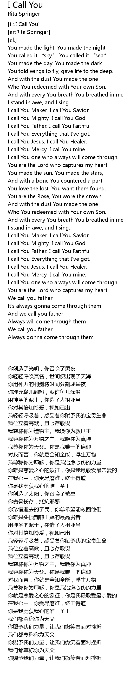| [02:55.93] | I call You Maker. I call You Savior. |