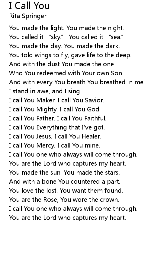 | I call You Maker. I call You Savior. | |