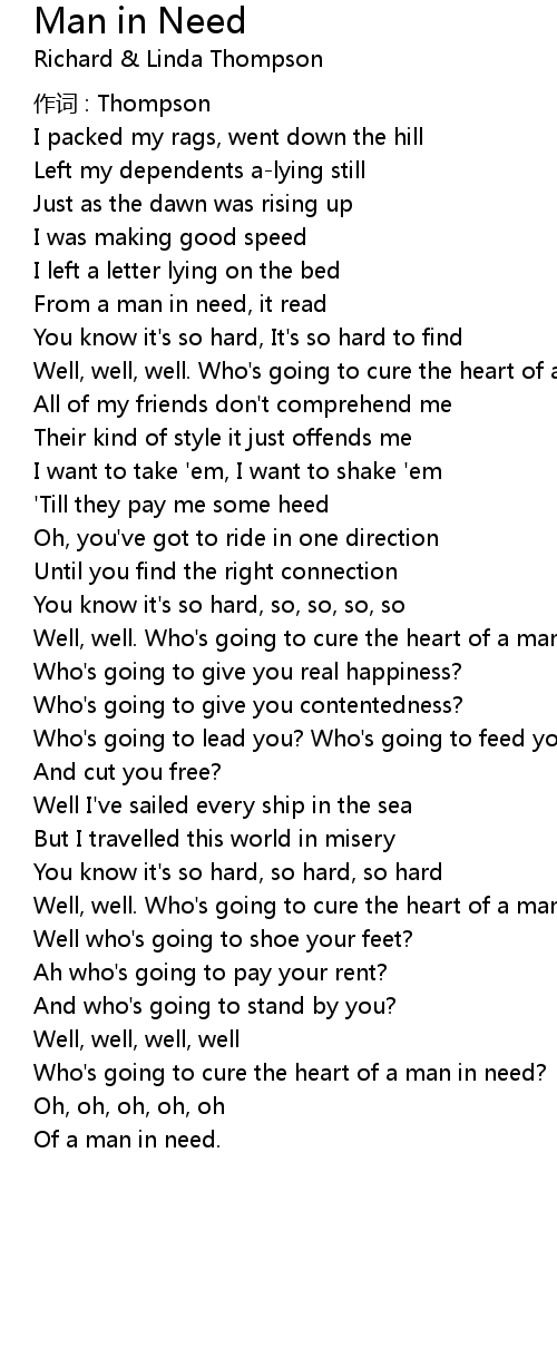 | Of a man in need. |