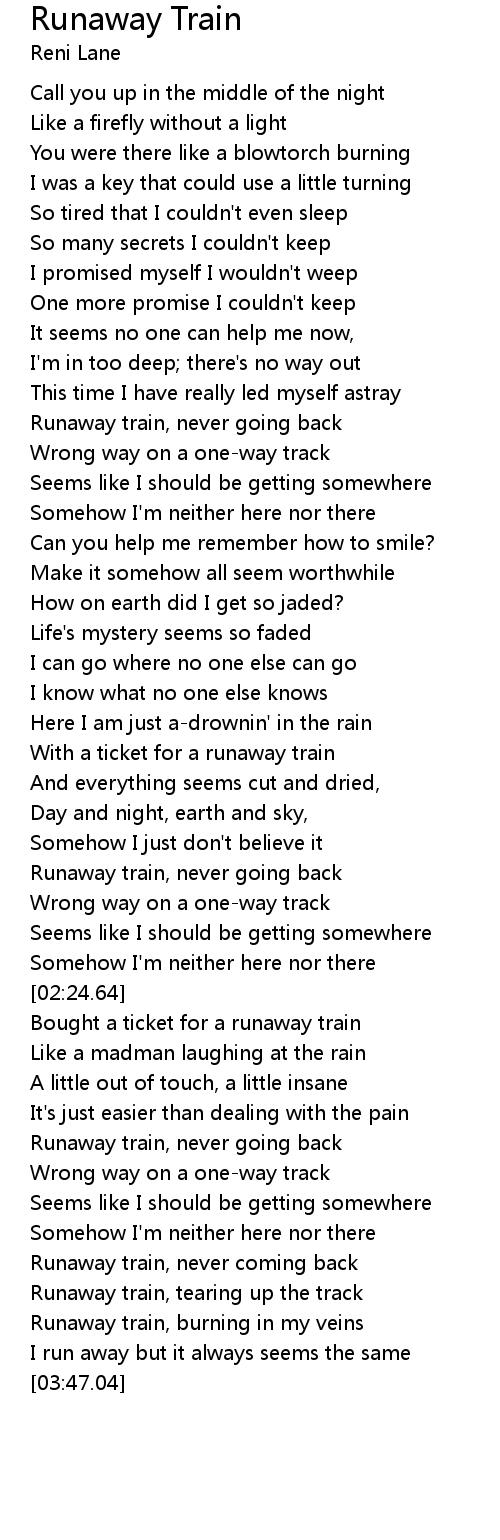 | [03:29.35] | Runaway train, never coming back |