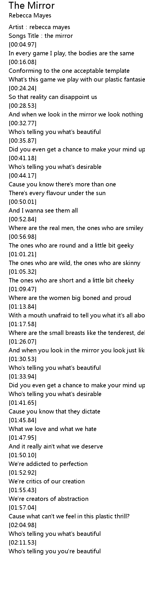 | [00:33.59] | Who' s telling you what' s beautiful |