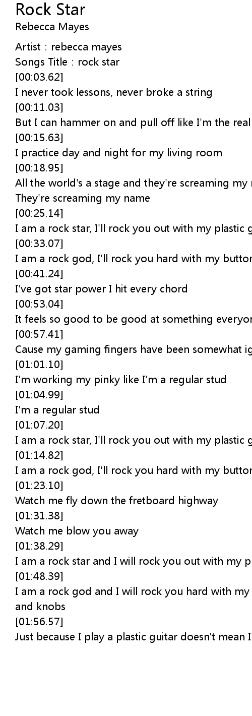 | [00:26.70] | I am a rock star, I'll rock you out with my plastic guitar |