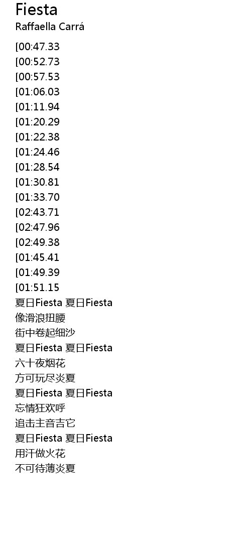 | [03:55.95][02:43.71][01:36.95] | xia ri Fiesta xia ri Fiesta |