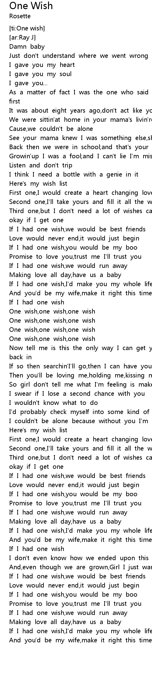 | [03:22.292] | If I had one wish,you would be my boo |
