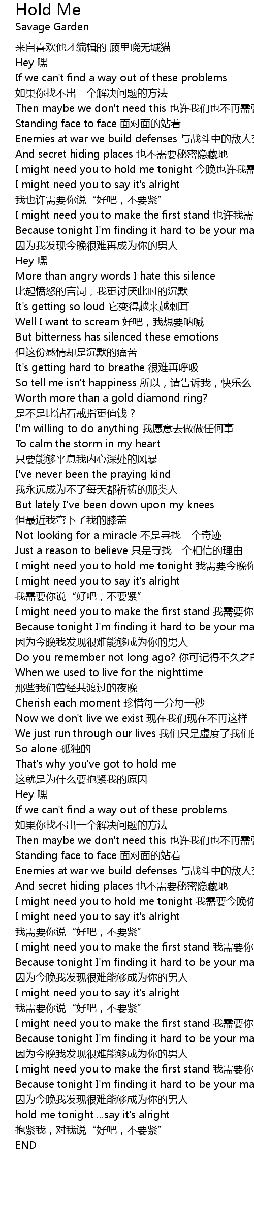 | [04:16.00] | hold me tonight ... say it' s alright bao jin wo, dui wo shuo" hao ba, bu yao jin" |