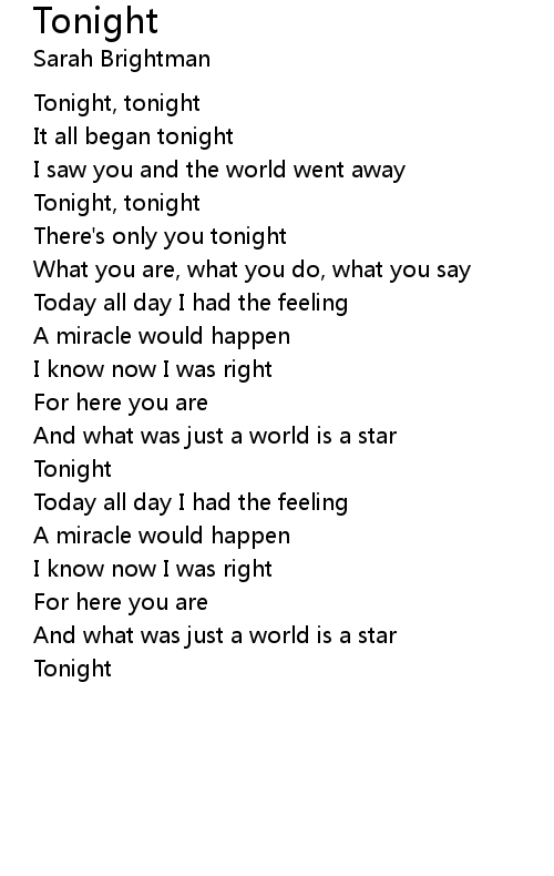 | Tonight, tonight | |