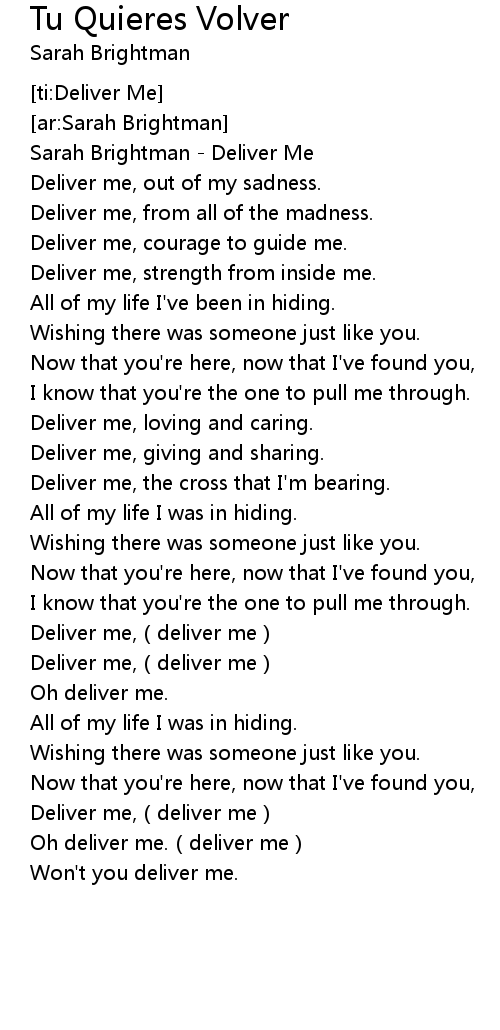 | [00:00.00] | Sarah Brightman - Deliver Me |