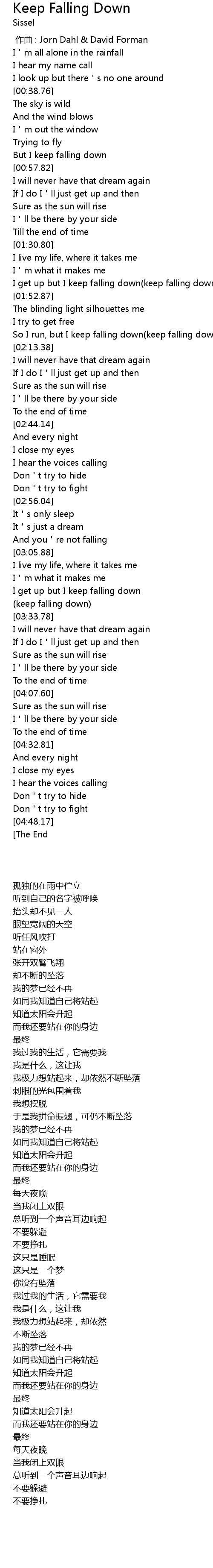 | [03:29.93] | 不断坠落 |