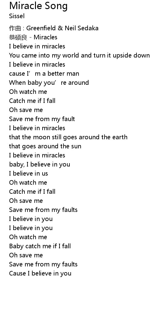 | I believe in miracles | |