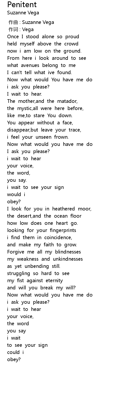 | [00:00.00] | 作曲 : Suzanne Vega |