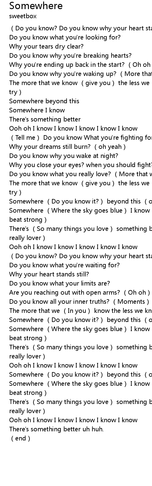 | [02:20.070] | Somewhere Do you know it? beyond this one of us will |