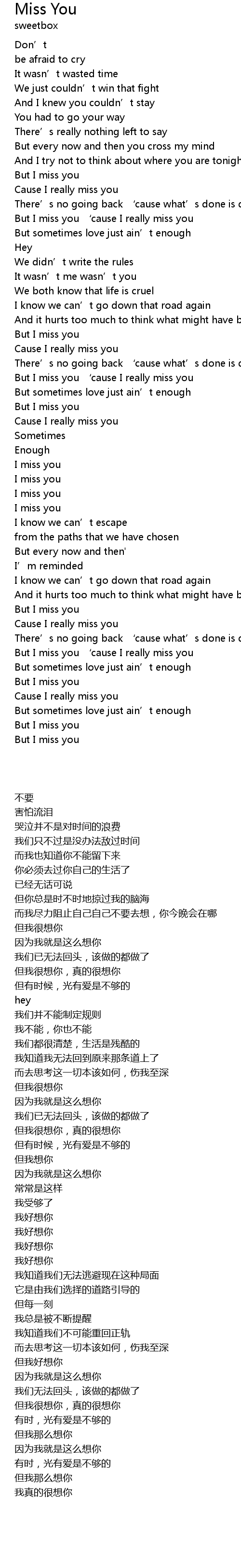 | [02:53.17] | But I miss you ' cause I really miss you |