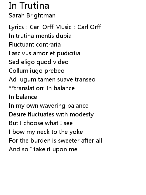 | 歌曲 | In Trutina |