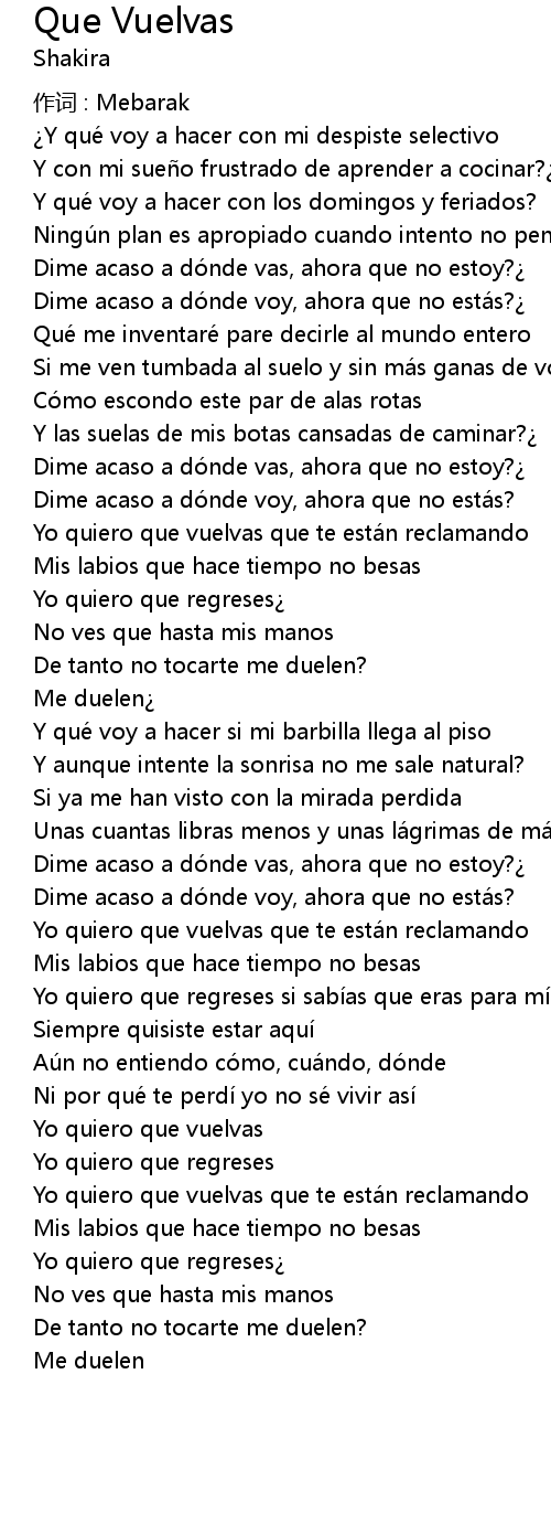 | Dime acaso a dó nde vas, ahora que no estoy? | |