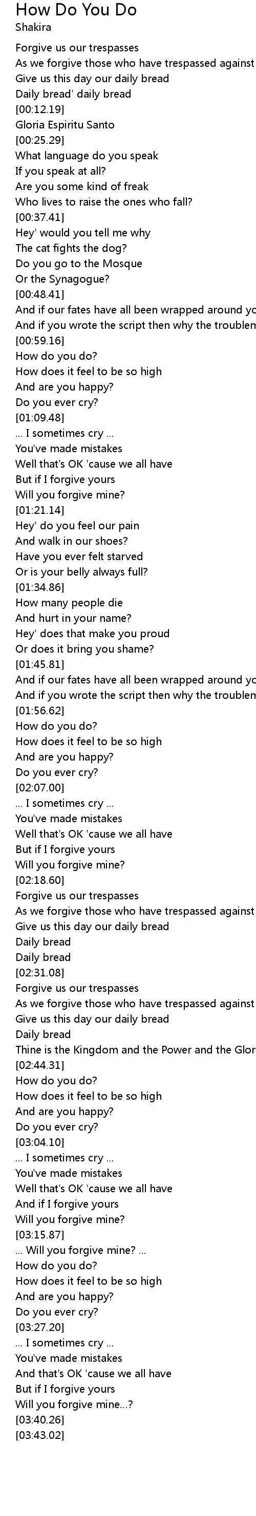 | [02:33.63] | As we forgive those who have trespassed against us |